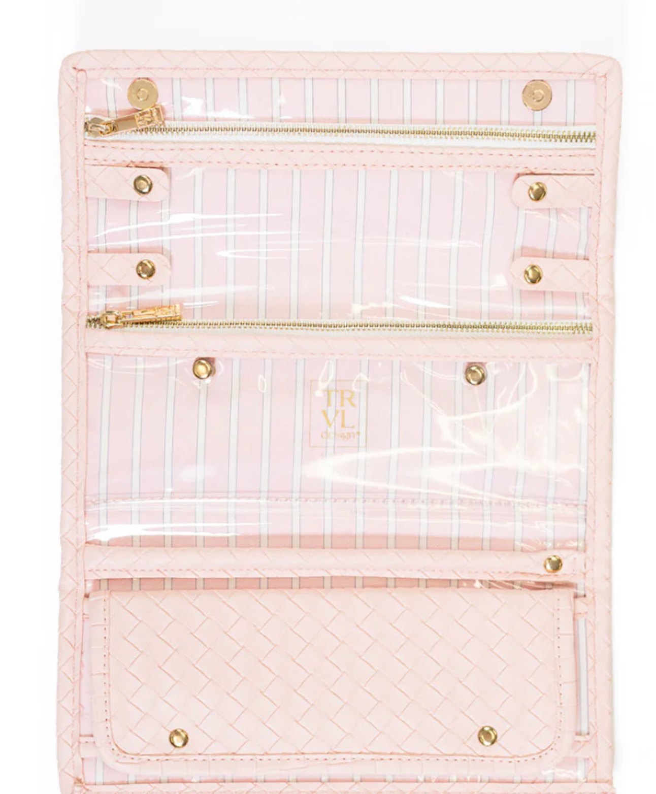 Our Luxe Woven Jewelry Wallet in Shell is a chic refresh of a TRVL favorite, designed to keep your jewelry secure and organized wherever you go. With smart interior details and a coordinating pinstripe lining, it’s a polished essential that pairs beautifully with the entire TRVL collection.