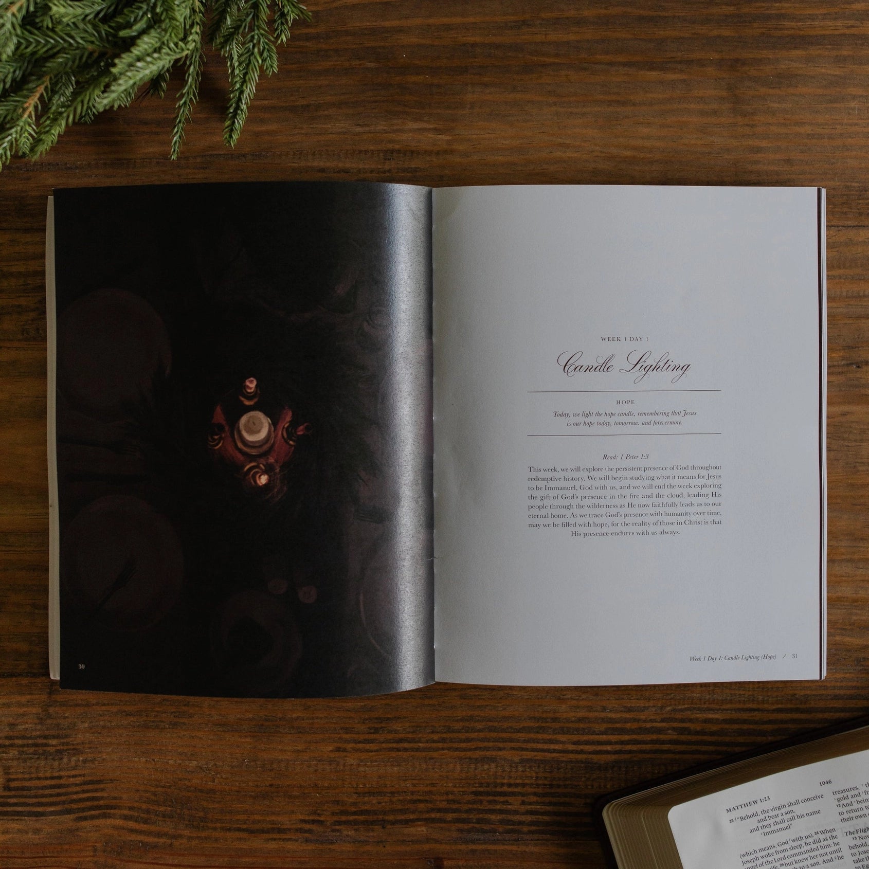 -Each week begins with an Advent candle lighting and memory verse, and there is a time at the end of each week for reflection on a Christmas hymn.