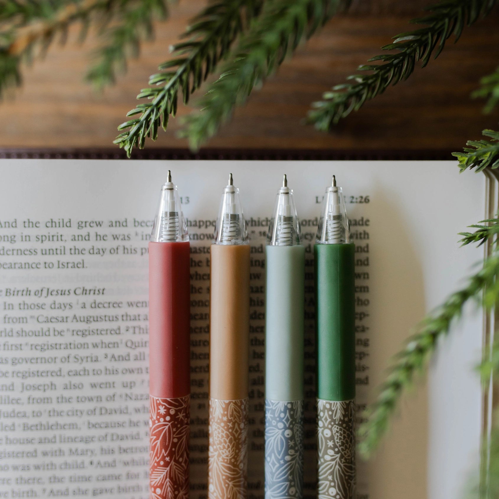 Our Advent Pen Set will be the perfect quiet time companion for you this Advent season! You'll love taking notes in your Bible, journaling or writing out your reflection questions in the Advent Bible Study with these beautiful pens! With 4, fine-point ballpoint pens, this truly is the perfect pen set. Each pen represents a different theme of Advent: Hope, Love, Joy and Peace. These pens offer a fine-point tips for precise lines and quality black ink. They are a fan favorite at The Daily Grace Co., and this year's Advent colors and florals are soon to be some of your favorites!