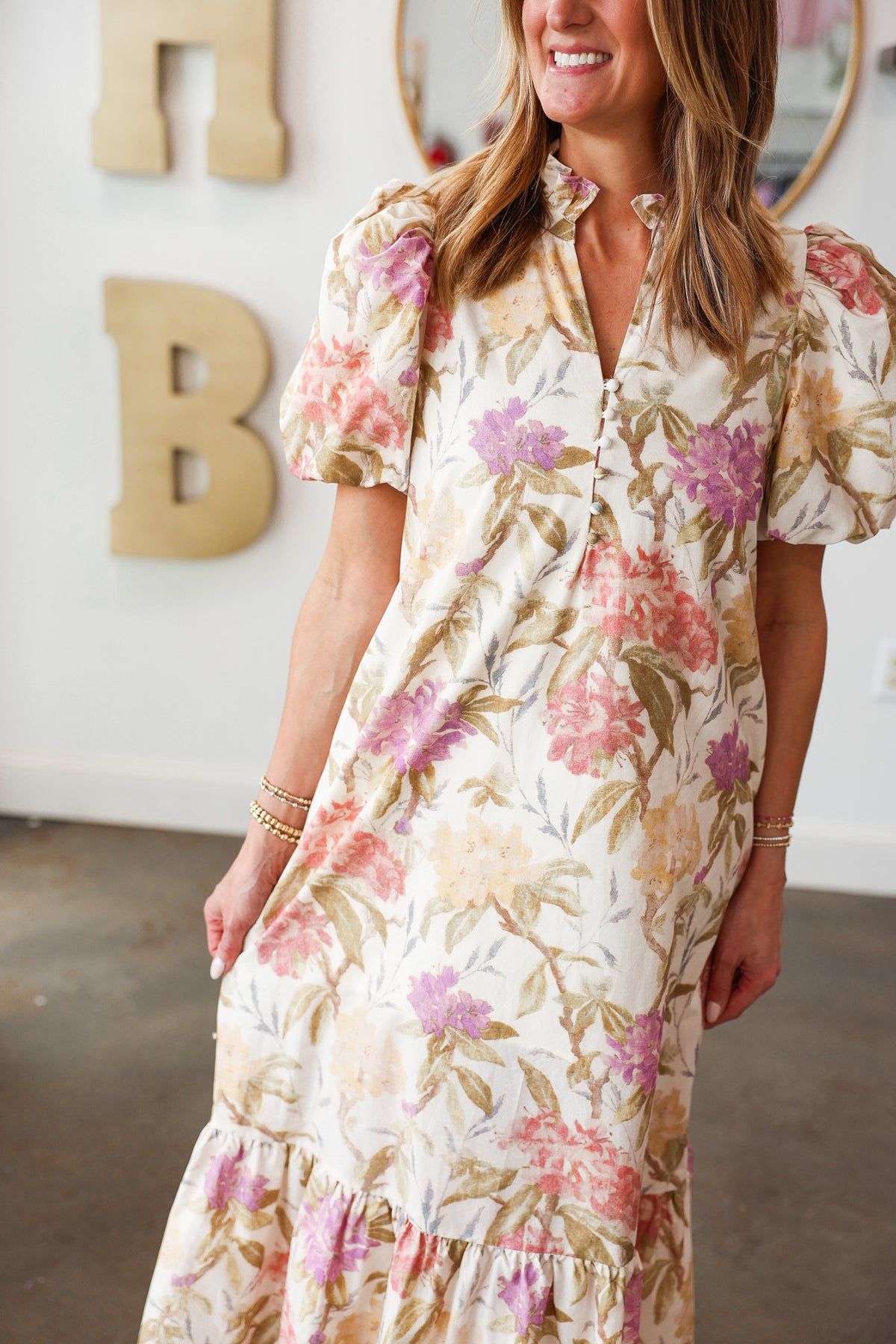 Button Front Floral Dress - Lavender