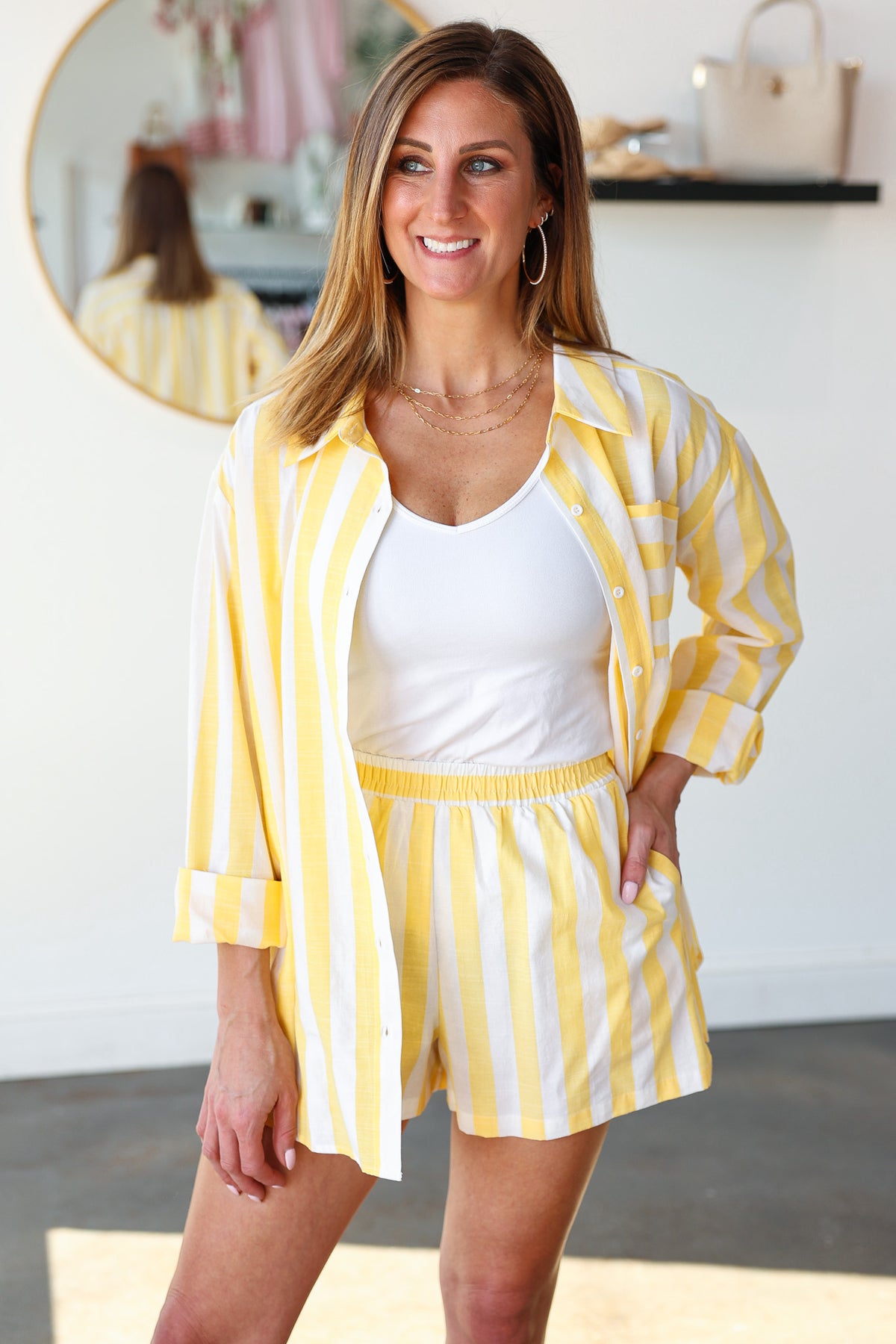 Striped Button Down Top - Yellow