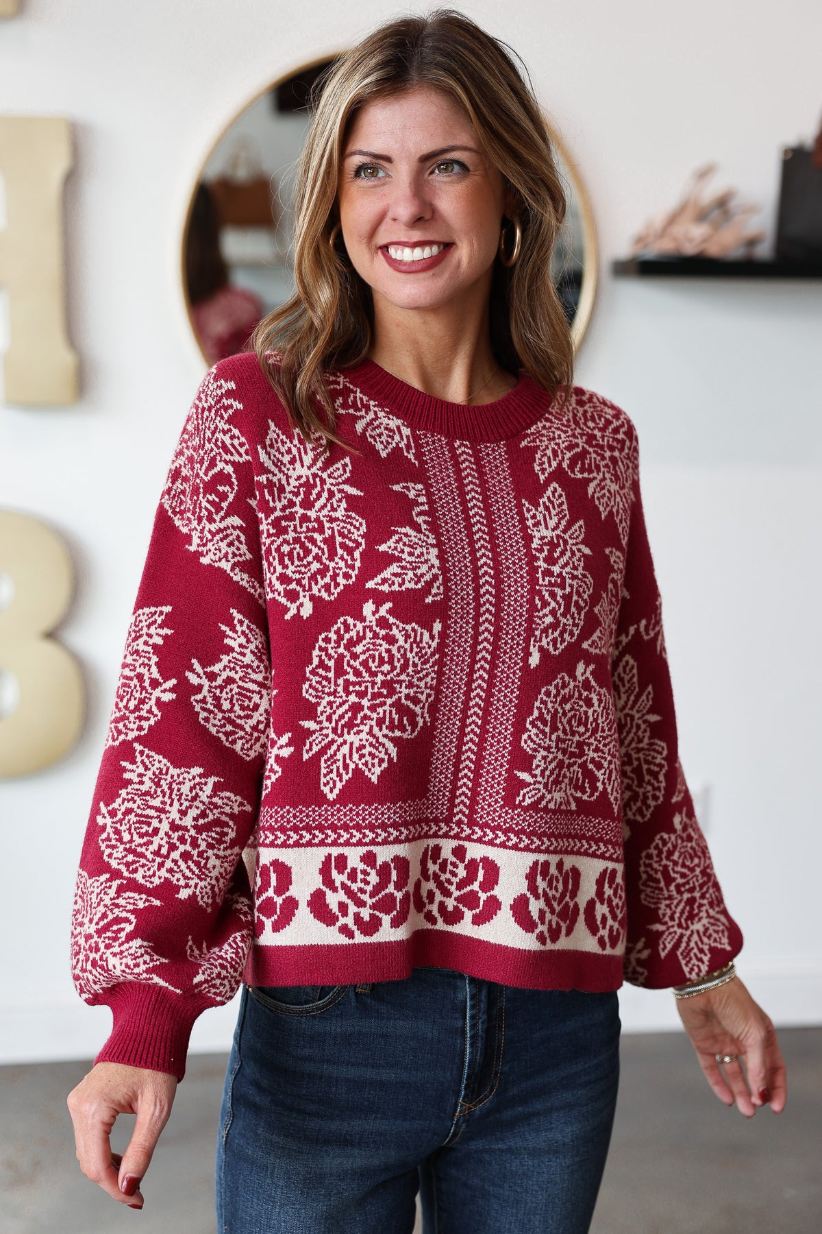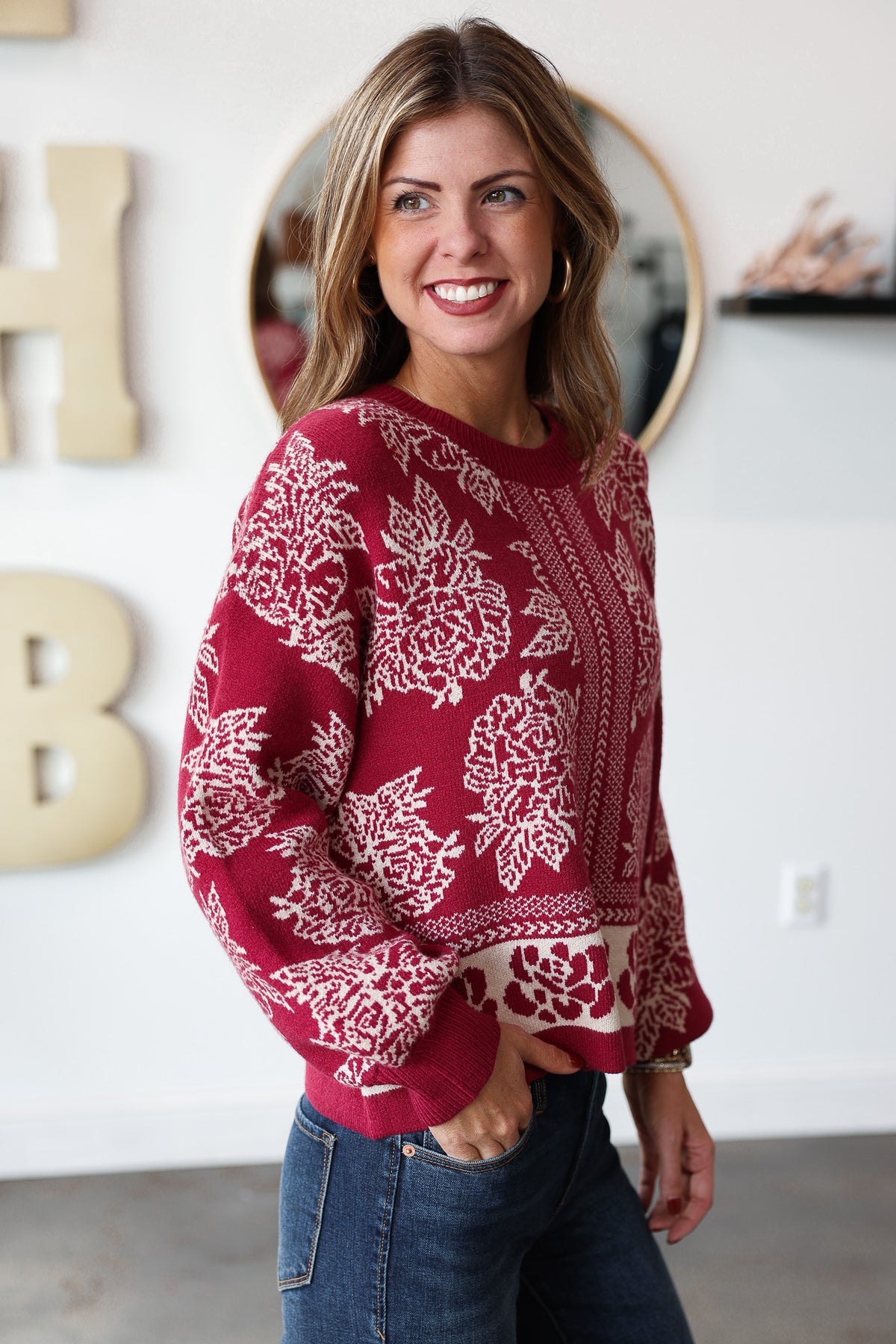 Printed Sweater - Red