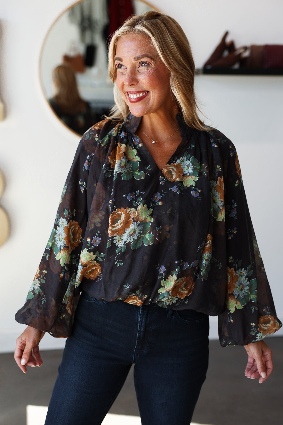 Bubble Hem Floral Top - Chocolate